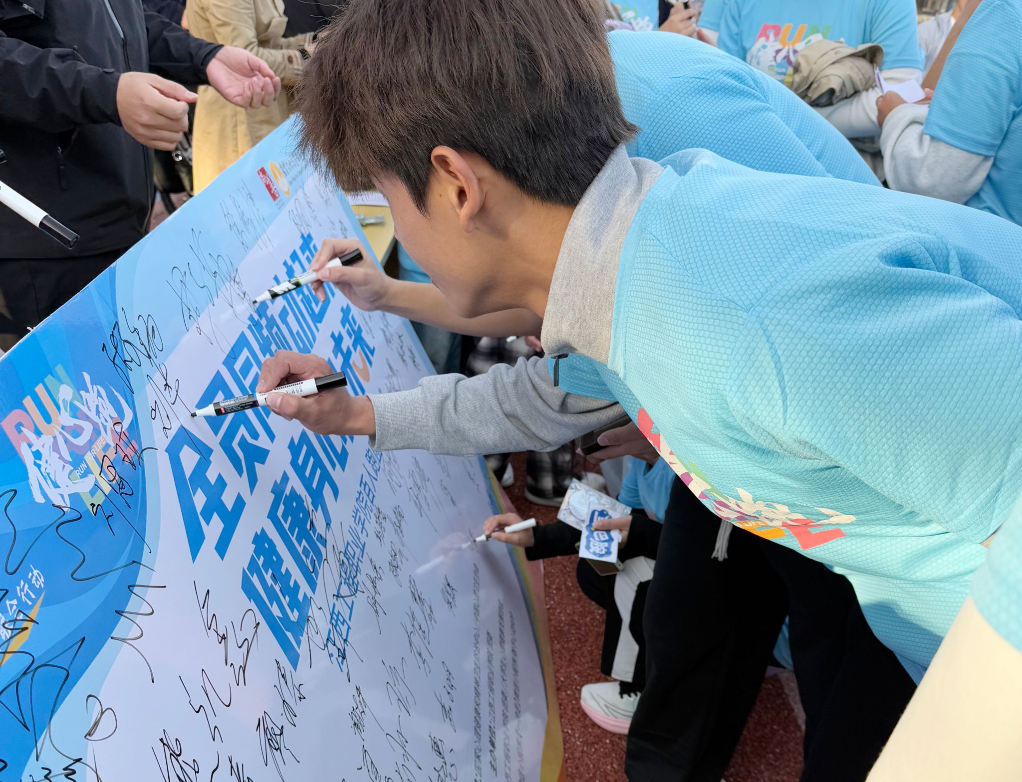 随着发令声响起,百名学子在老师的带领下正式开跑。大家沐浴在阳光下,迈着轻快的步伐奔跑,用汗水诠释坚持,在运动中释放压力。启动仪式结束后,学子们还参与了签名打卡活动,并领取了学校精心准备的文创纪念品。