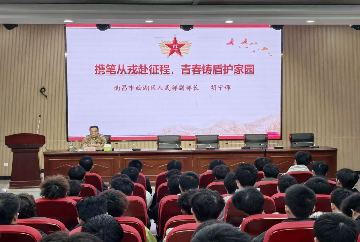为普及国家征兵政策,激发青年学子投身国防、报效祖国的热情,11月21日下午,西湖区人民武装部副部长胡宁辉莅临学校莲塘校区,为师生带来了一场内容丰富、激励人心的征兵宣讲会